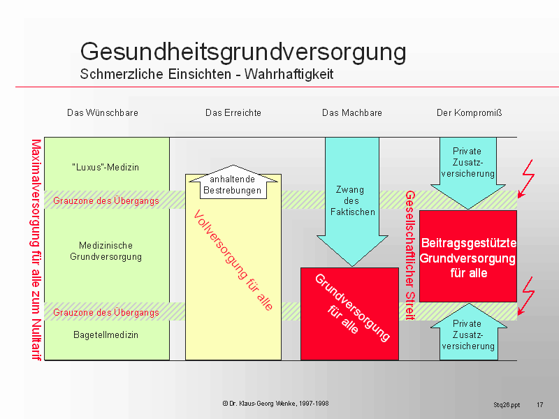 - Die Gesundheitsgrundversorgung umfaßt keine Bagatell- und keine Luxusmedizin. Sie beschränkt sich auf das Notwendige: "das die Not Abwendende!"
