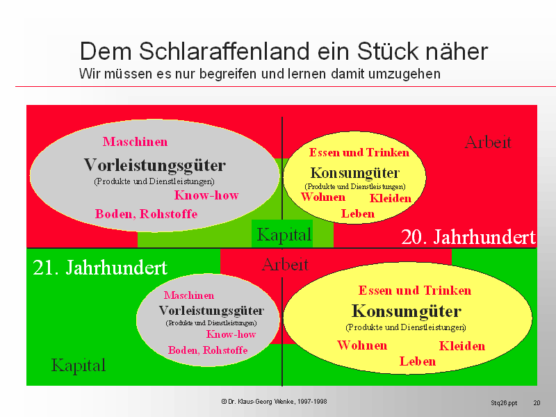 Wer wollte angesichts der technologisch explodierenden Errungenschaften nicht prinzipiell anerkennen, daß wir "dem Schlaraffenland ein Stück näher" kommen. Wir müssen es nur begreifen. Und: Wir müssen lernen, damit umzugehen.